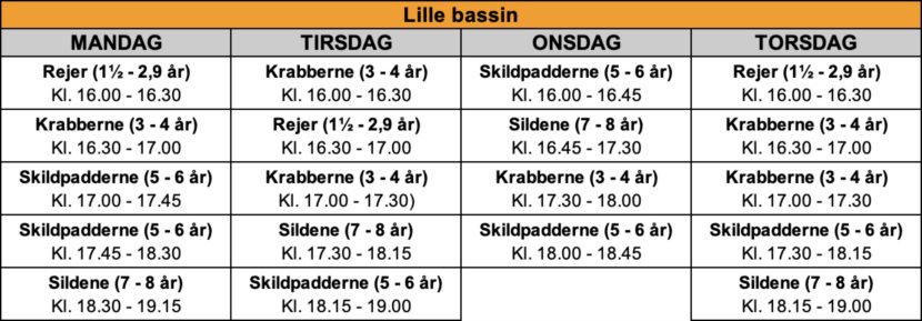 Hvis i er i tvivl om hvilket hold jeres barn skal på, så kan i under svømmehold læse om de forskellige hold og hvad man lærer derpå og dermed finde frem til hvad der passer til jeres barn.
