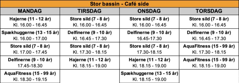 Svømmesæson 25/26 starter op mandag i uge 40 og sæsonen slutter torsdag i uge 13-2026.